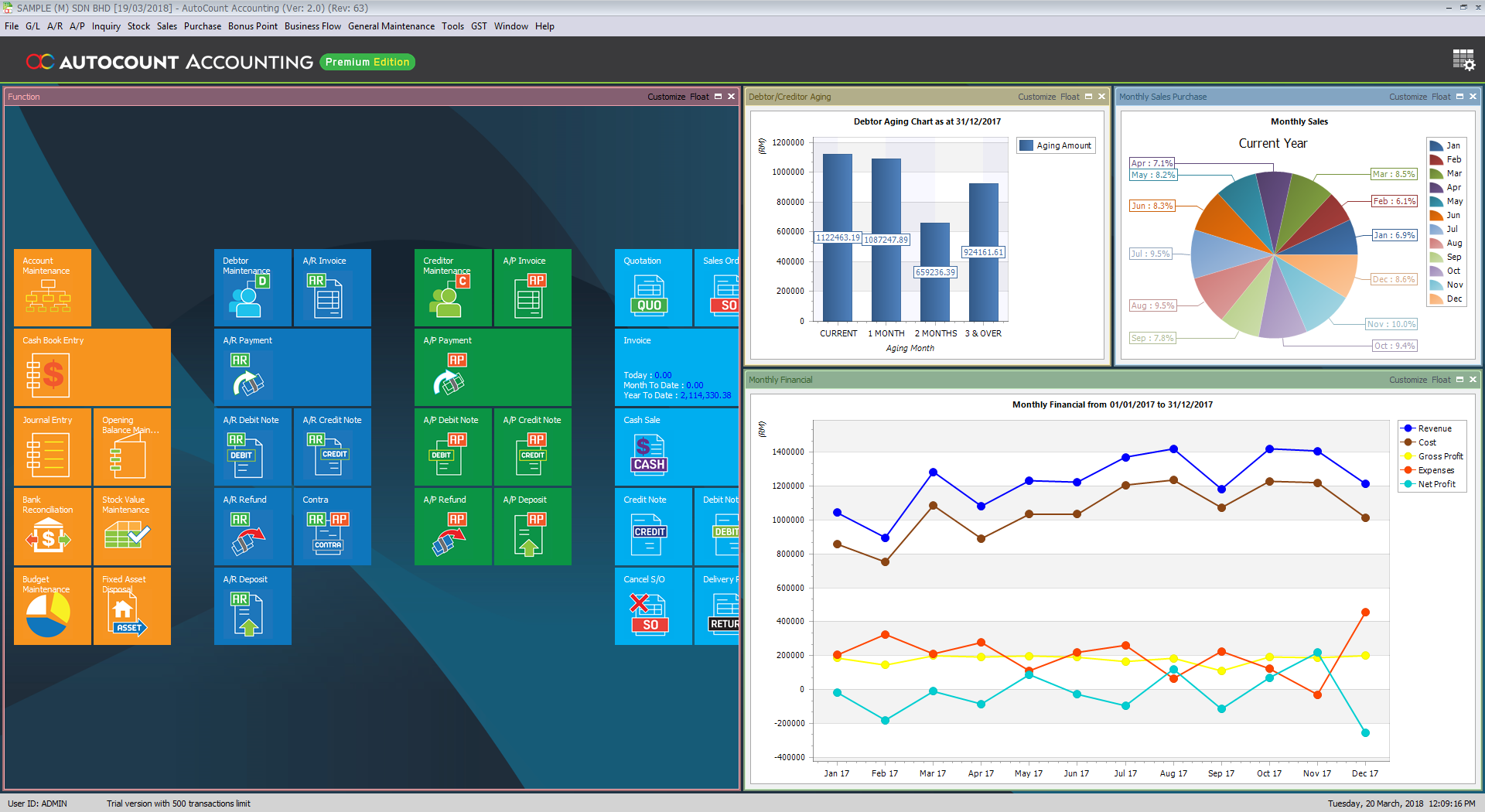 We use AutoCount because we got recommendation from Tune Service. It is pretty simple, straight forward in terms of payment, inventory and so on.